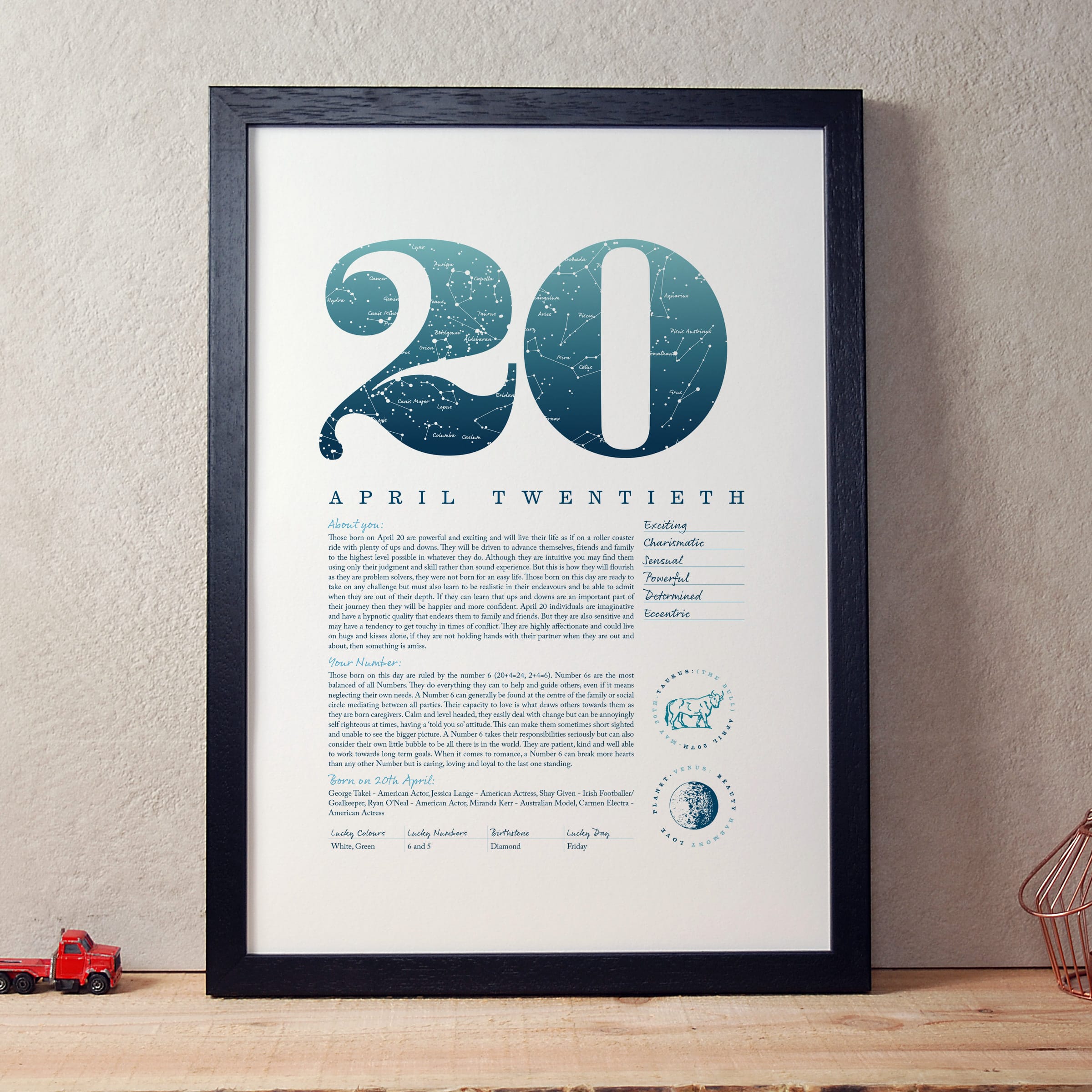 … Those born on April 20 are powerful and exciting and will live their life as if on a roller coaster ride with plenty of ups and downs. They will be driven to advance themselves, friends and family to the highest level possible in whatever they do. Although they are intuitive you may find them using only their judgment and skill rather than sound experience. Those born on this day are ruled by the number 6 (20+4=24, 2+4=6). Number 6s are the most balanced of all Numbers. They do everything they can to help and guide others, even if it means neglecting their own needs. A Number 6 can generally be found at the centre of the family or social circle mediating between all parties …