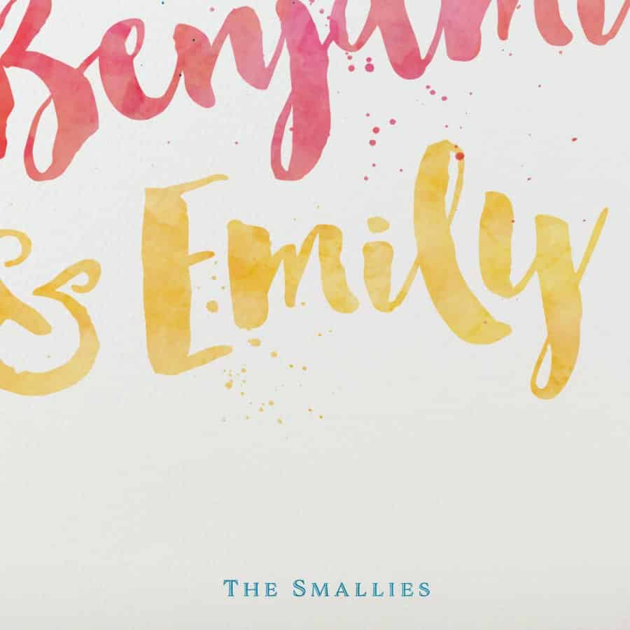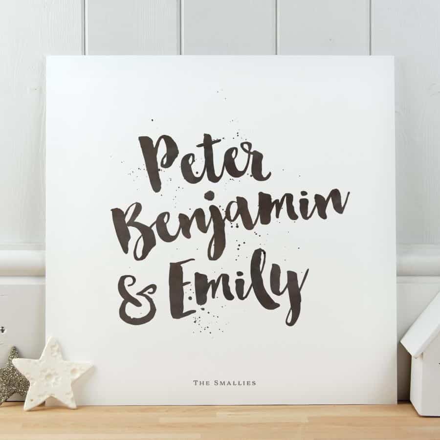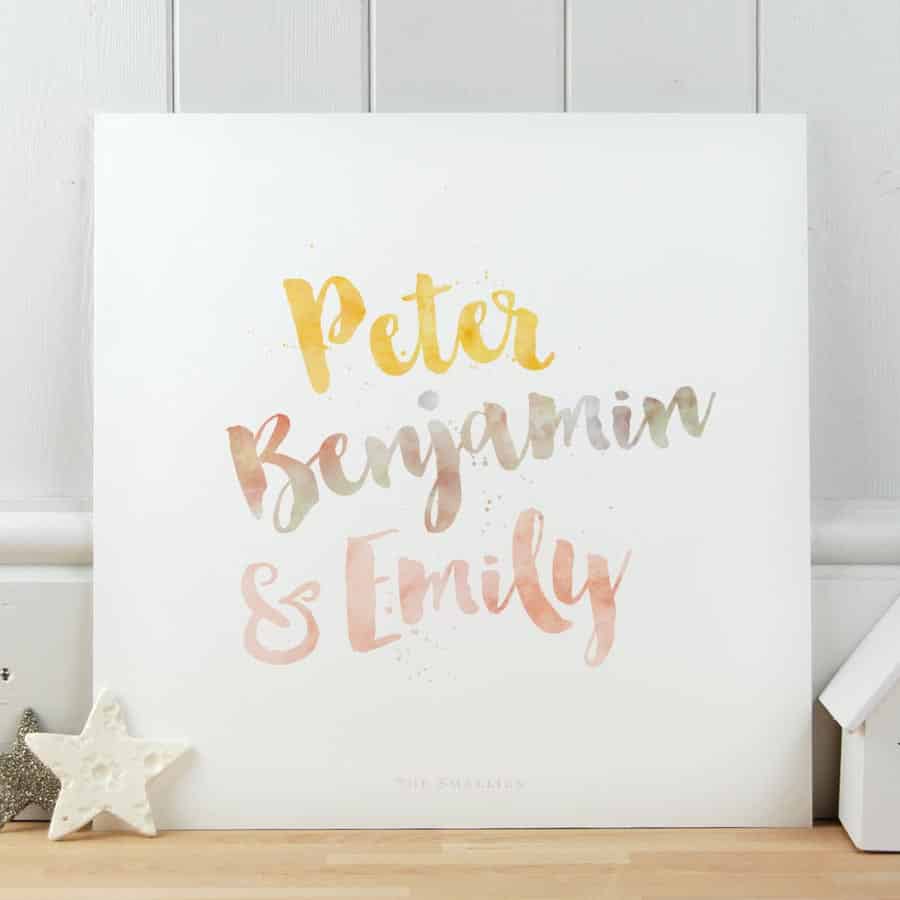 Capture all the children’s names in a stunning watercolour style print created with a handbrushed font, different coloured watercolour inks and splatters. Giclee print (lifetime no fade guarantee) on 300gm acid free off-white Artists watercolour paper. Frame also available (+€25). Choice available to add family name or personal message to the bottom of the print. Add up to 6 names.