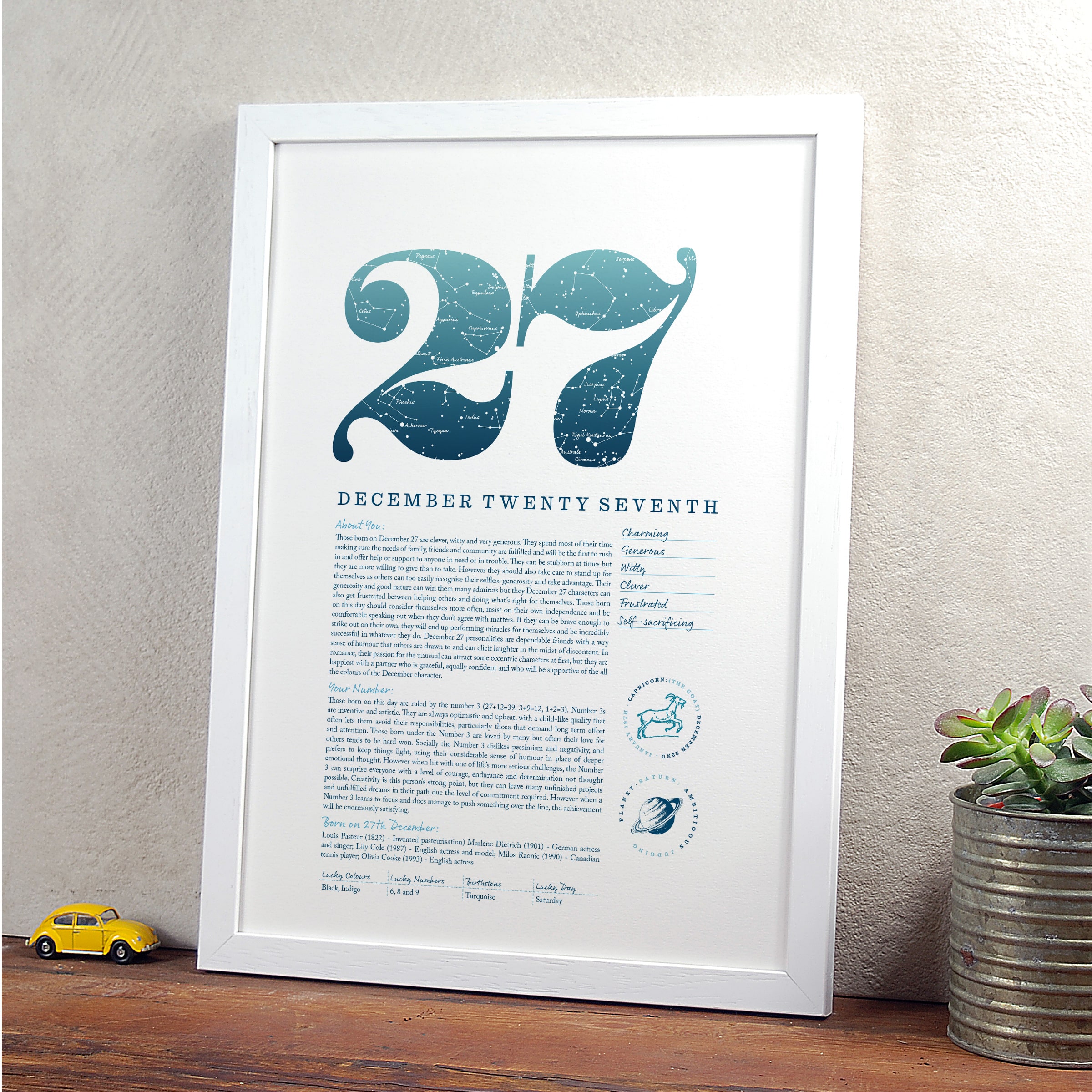 … Those born on December 27 are clever, witty and very generous. They spend most of their time making sure the needs of family, friends and community are fulfilled and will be the first to rush in and offer help or support to anyone in need or in trouble. They can be stubborn at times but they are more willing to give than to take. Those born on this day are ruled by the number 3 (27+12=39, 3+9=12, 1+2=3). Number 3s are inventive and artistic. They are always optimistic and upbeat, with a child-like quality that often lets them avoid their responsibilities. Socially the Number 3 dislikes pessimism and negativity, and prefers to keep things light, using their considerable sense of humour in place of deeper emotional thought …