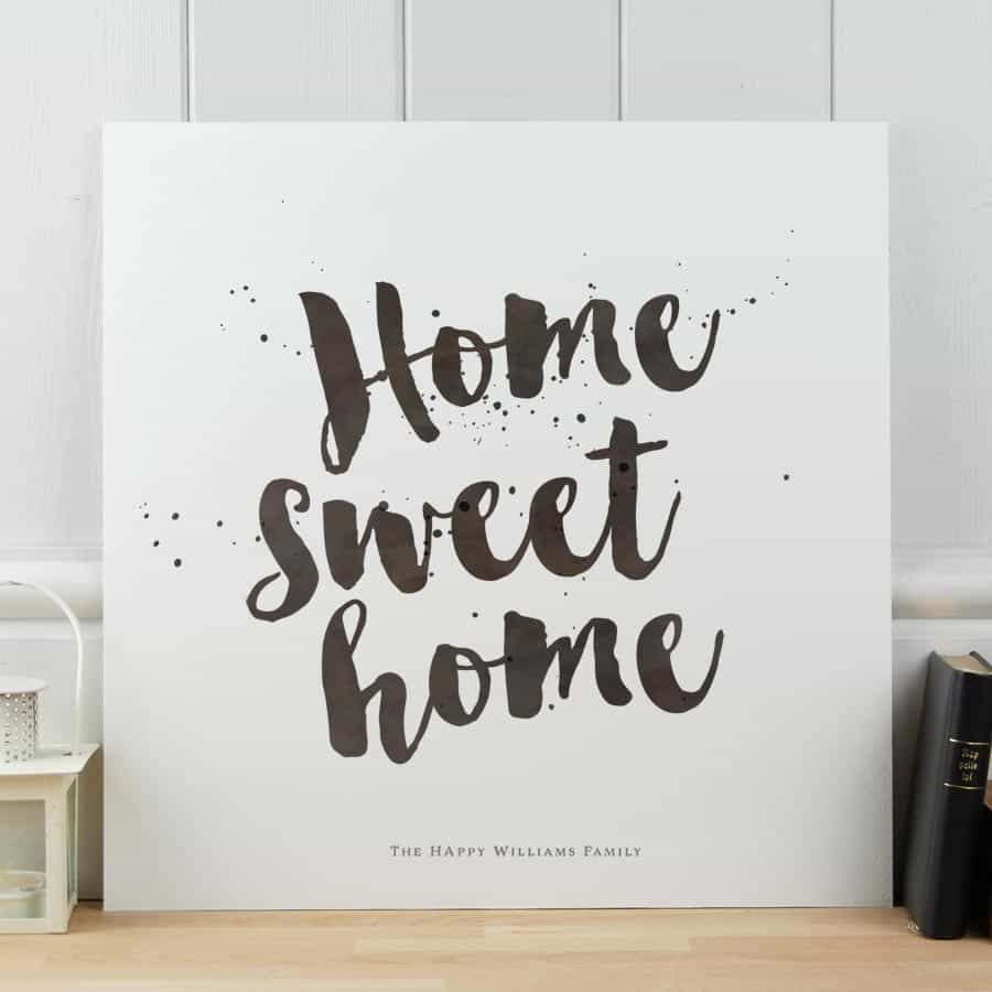 “Home sweet home” print produced in a handbrushed font and different coloured watercolour ink effects. Giclee print on 300gm acid free off-white Artists watercolour paper and comes with an off-white mount. Frame also available (+€25). Choice available to add family name or personal message to the bottom of the print.