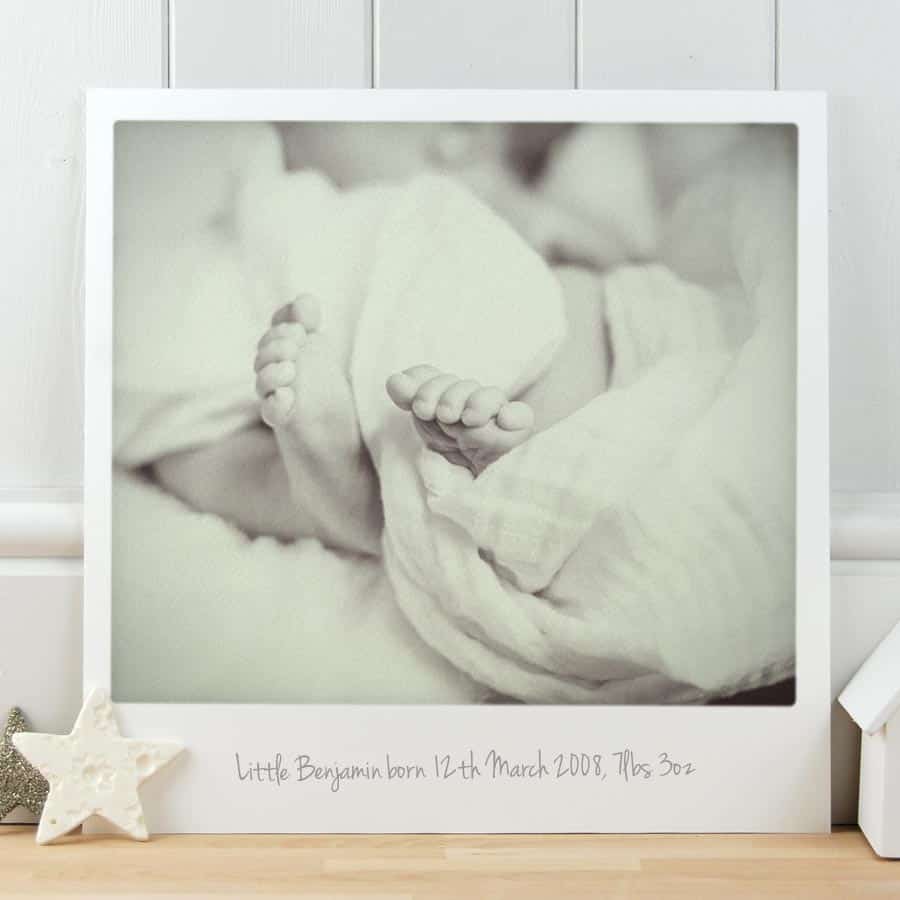 Capture a special New baby moment with this large personalised Vintage Photo print (size: 32cm x 32cm). Upload your favourite photo and we will transform it into a stunning vintage polaroid style print. Printed on 300gm acid free off-white Artists watercolour paper. Can be supplied as a print or professionally framed (+€25). You can choose vintage colour, vintage Black & white, or keep the original colour and you can add a personalised message or date to the bottom of the print. Can be left blank if you prefer. If you would like a proof emailed to you, please let us know, we can make minor adjustments if necessary.