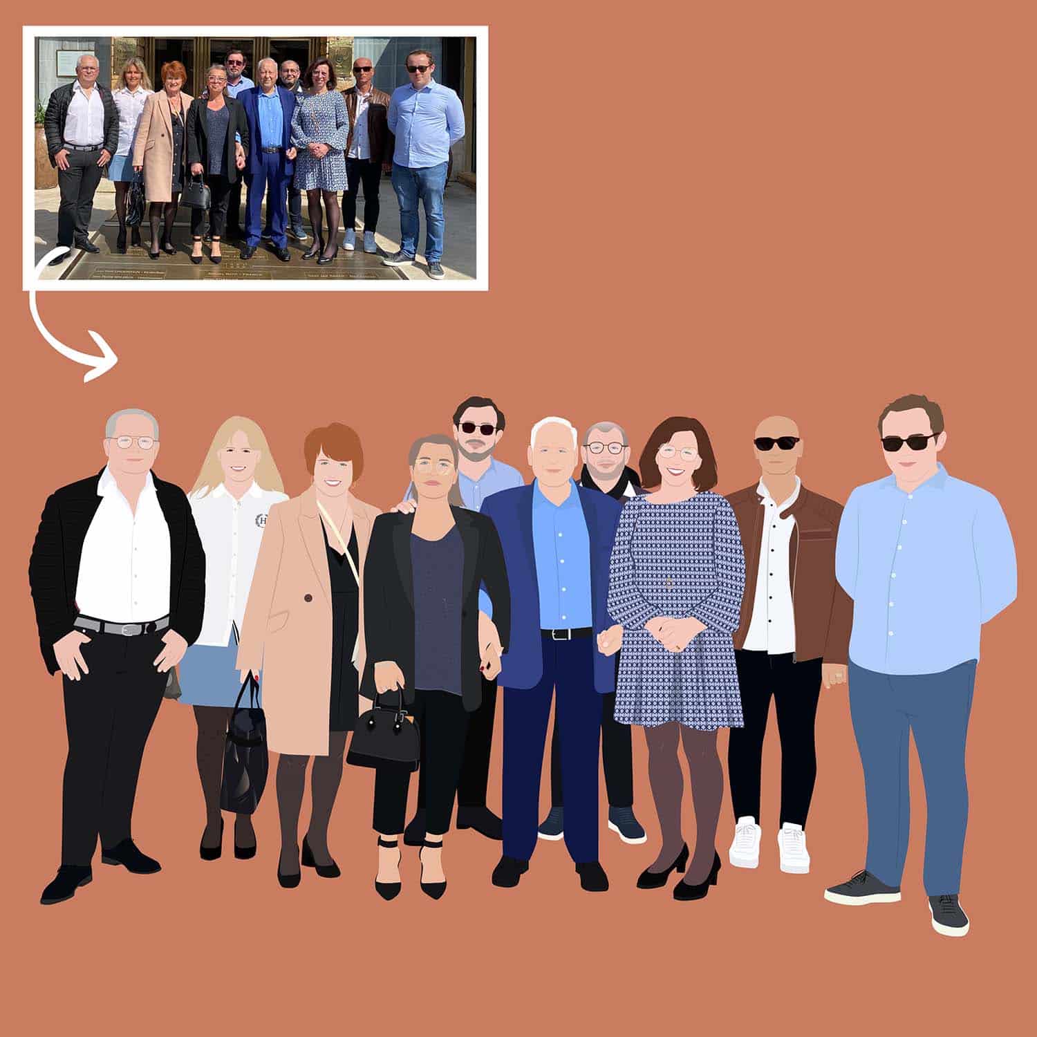 We will transform your photo into a detailed and colorful drawing. All our illustrations are hand-drawn by a professional illustrator using design software.
